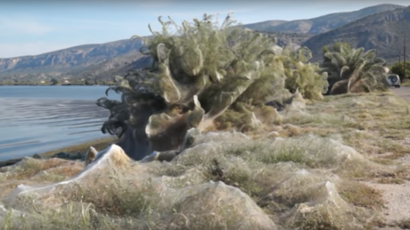 Thousands of spiders descend on Greek town & cover it with 300-meter-long web (PHOTOS, VIDEO)